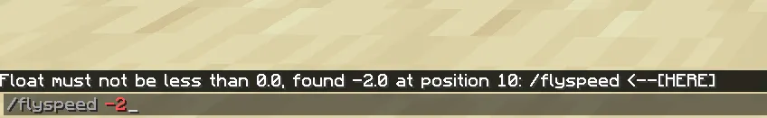 Commands.literal("flyspeed") .then(Commands.argument("speed", FloatArgumentType.floatArg(0, 1.0f)) .executes(ctx -> { float speed = ctx.getArgument("speed", float.class); /* Set player's flight speed */ return Command.SINGLE_SUCCESS; }) );Now, if we input a valid float between 0 and 1, the command would execute correctly: